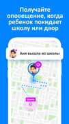 Контроль безопасности – проверьте, что ребёнок вовремя пришёл в школу - получайте уведомления о том, когда он приходит в школу и возвращается домой;