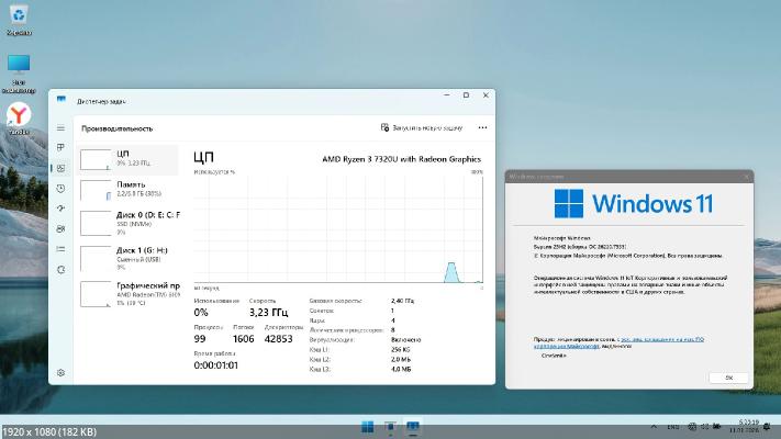 Сборка Windows 11 25H2 с обновлениями от 9 января 2026 года. Удалена телеметрия, отключен защитник и вырезаны все стандартные приложения. Используется популярный установщик от Флибустьера, позволяющий подстроить систему под себя.