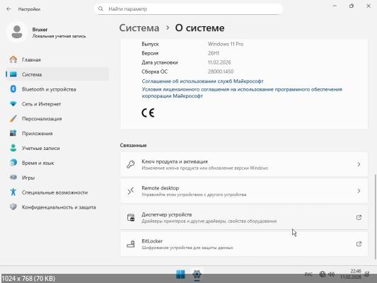 Название: Windows 11 Lite Pro 26H1 Build 28000.1450 by Bruxer (RUS/2026)